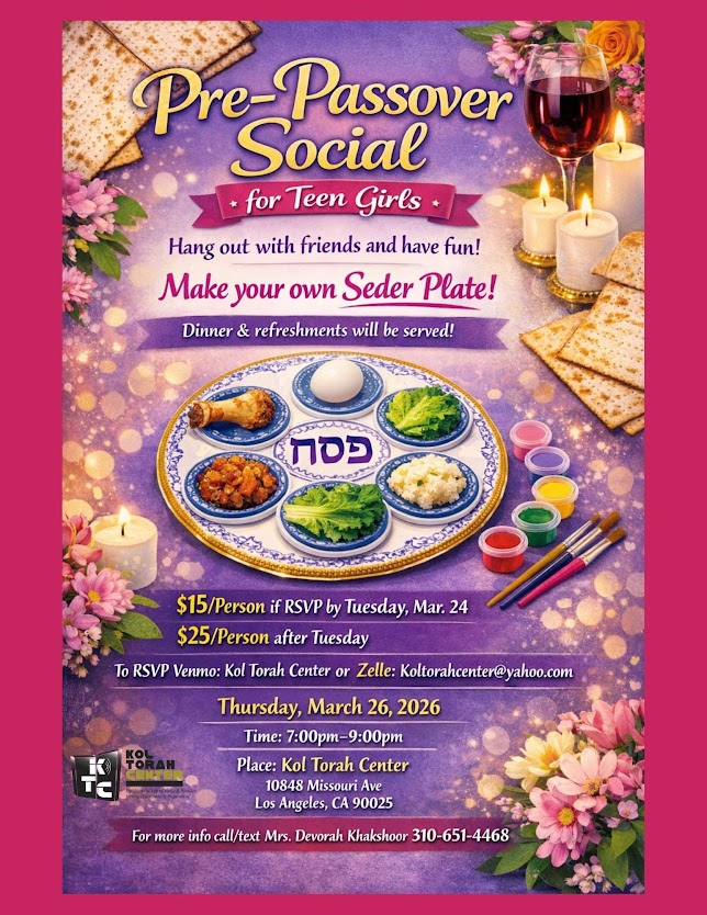 Pre-Passover Social For Teen Girls