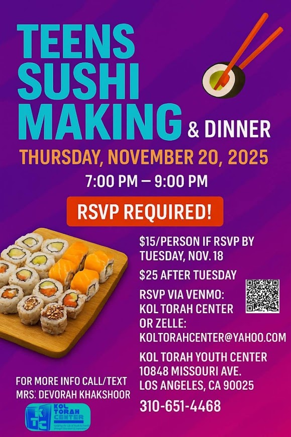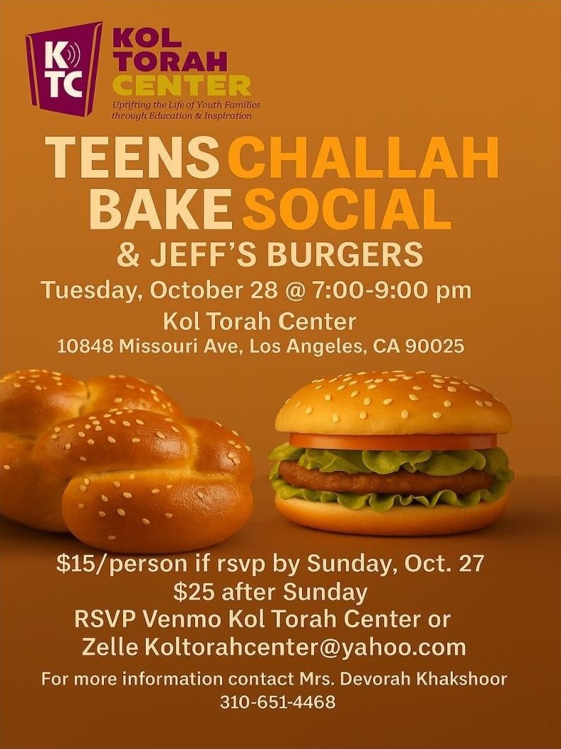 Activities Family Shabbat & Teens Social November 6, 2025 / Events, Kol Torah Center, News, Teen Events Teens Sushi Making & Dinner November 4, 2025 / Events, Girl Zone, Kol Torah Center, News, Teen Events Torah & Taste Teen Series November 4, 2025 / Classes, Events, Kol Torah Center, News, Teen Events Young Family Shabbat October 29, 2025 / Kol Torah Center, Young Families Young Family Shabbat October 29, 2025 / Kol Torah Center Teens Challah Bake Social October 29, 2025 / Galleries, Girl Zone, Kol Torah Center, Teen Events Shemini Atzeret & Simchat Torah Schedule October 13, 2025 / Holiday, Kol Torah Center Grand Sukkah Ice Cream Party October 10, 2025 / Holiday, Kol Torah Center Pre-Rosh Hashannah Challah Bake September 16, 2025 / Challah Bake, Girl Zone, Holiday, Kol Torah Center Sunday Hebrew School w School September 3, 2025 / Classes, Kol Torah Academy, Kol Torah Center, Preschool High Holidays Services 2025 (5756) September 3, 2025 / Holiday, Kol Torah Center Morning Gemara Class August 28, 2025 / Classes, Kol Torah Center Siyum Masechet Rosh Hashannah Celebration August 28, 2025 / Classes, Kol Torah Center Shabbat Luncheon For Teen Girls August 18, 2025 / Girl Zone, Kol Torah Center, Teen Events Special Pre- Tu B’Av Challah Bake July 30, 2025 / Challah Bake, Girl Zone, Holiday, Kol Torah Center 1 2 3 … 19 ›