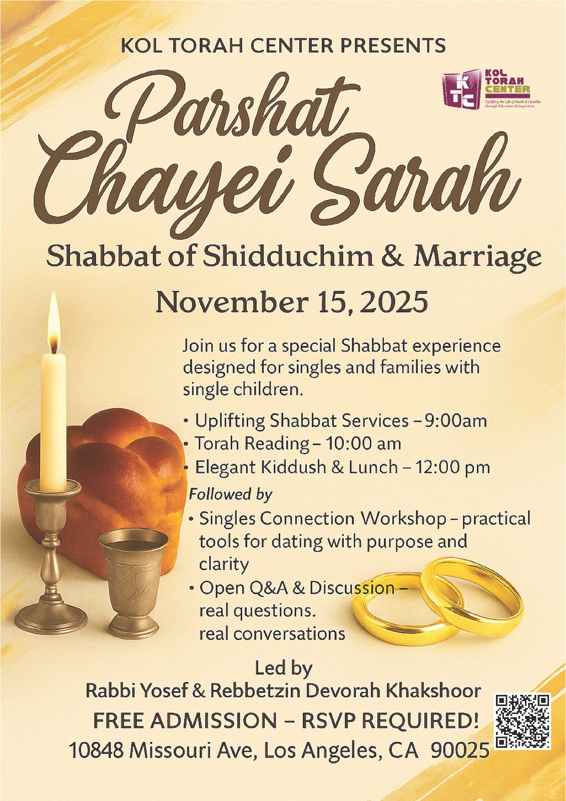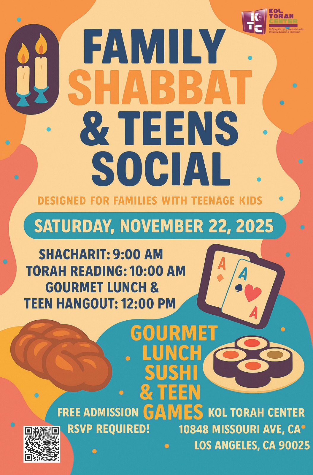 Activities Parshat Vayetze – Young Family Shabbat Young Family Shabbat – 1 November 27, 2025 / Events, Kol Torah Center, News Parshat Toldot – Family Shabbat & Teens Social November 18, 2025 / Kol Torah Center, Teen Events Parshat Chayei Sara – Shabbat of Shidduchim & Marriage November 12, 2025 / Girl Zone, Kol Torah Center Family Shabbat & Teens Social November 6, 2025 / Kol Torah Center, Teen Events Teens Sushi Making & Dinner November 4, 2025 / Girl Zone, Kol Torah Center, Teen Events Torah & Taste Teen Series November 4, 2025 / Classes, Events, Kol Torah Center, News, Teen Events Young Family Shabbat October 29, 2025 / Kol Torah Center, Young Families Young Family Shabbat October 29, 2025 / Kol Torah Center Teens Challah Bake Social October 29, 2025 / Galleries, Girl Zone, Kol Torah Center, Teen Events Shemini Atzeret & Simchat Torah Schedule October 13, 2025 / Holiday, Kol Torah Center Grand Sukkah Ice Cream Party October 10, 2025 / Holiday, Kol Torah Center Pre-Rosh Hashannah Challah Bake September 16, 2025 / Challah Bake, Girl Zone, Holiday, Kol Torah Center Sunday Hebrew School w School September 3, 2025 / Classes, Kol Torah Academy, Kol Torah Center, Preschool High Holidays Services 2025 (5756) September 3, 2025 / Holiday, Kol Torah Center Morning Gemara Class August 28, 2025 / Classes, Kol Torah Center 1 2 3 … 19 ›